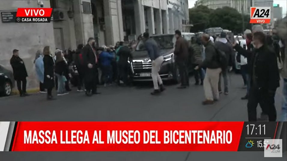 Golpearon al auto de Sergio Massa cuando ingresaba a Casa Rosada para asumir